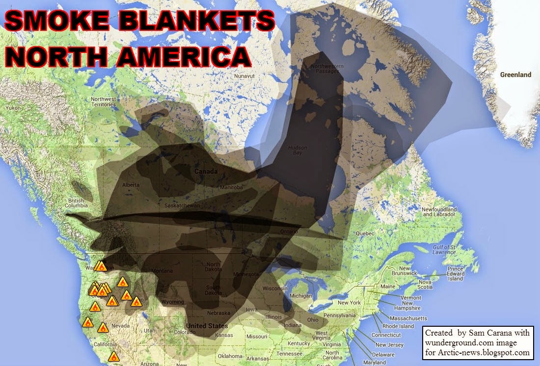 Last week there was even a thick black arm of smoke running up to the Arctic, to Hudson's Bay and Baffin Island. It's starting to reach Greenland.